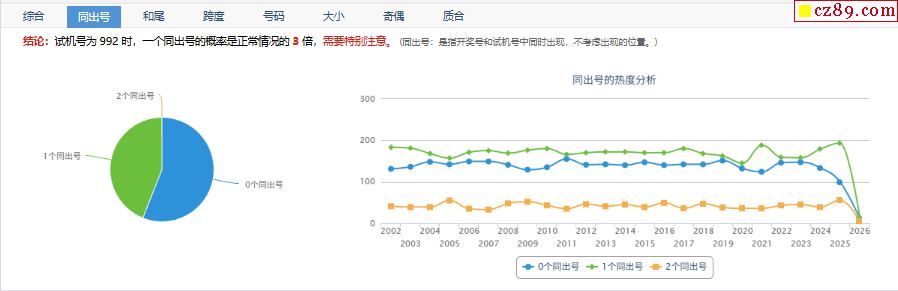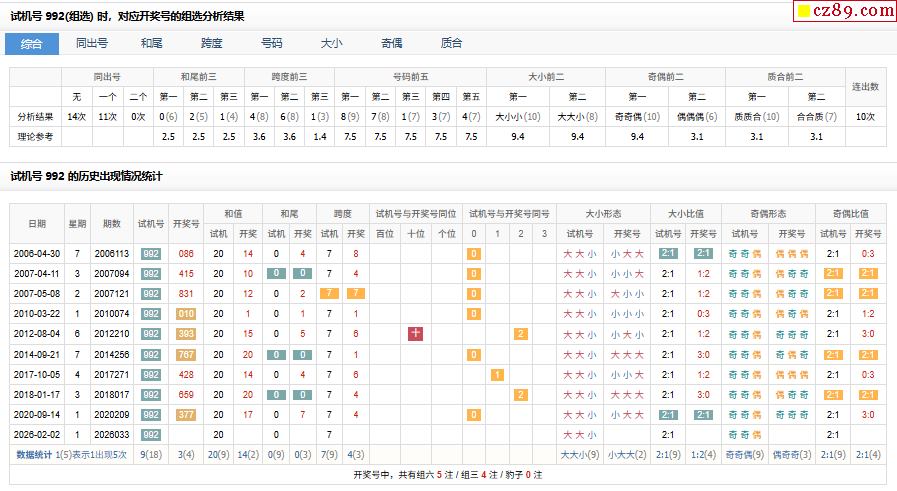 > 033期福彩3D试机号992对应开奖号的组选分析结果