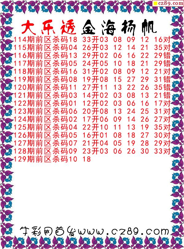 大乐透2025129期金海扬帆前区杀号图谜